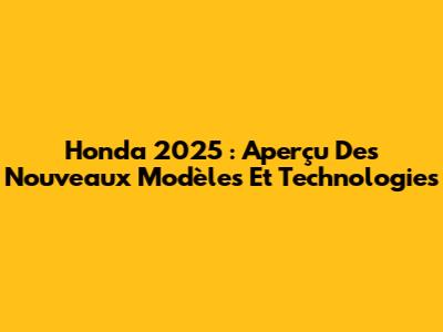 Honda 2025 : Aperçu Des Nouveaux Modèles Et Technologies