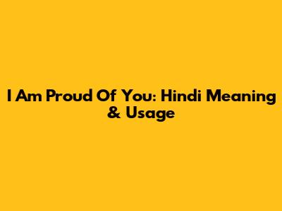 I Am Proud Of You: Hindi Meaning & Usage