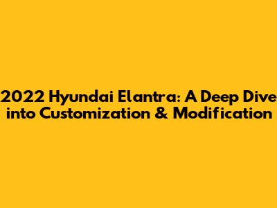 Hey car enthusiasts! Are you ready to transform your 2022 Hyundai Elantra into a head-turner? This article is your ultimate guide to customizing and modifying your Elantra. We'll explore various modification options, from performance upgrades to aesthetic enhancements, ensuring your Elantra stands out from the crowd. Whether you're a seasoned gearhead or just starting your customization journey, we've got you covered. Let's dive into how you can make your Elantra a true reflection of your personality and style!