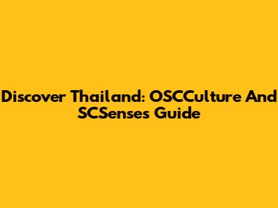Discover Thailand: OSCCulture And SCSenses Guide