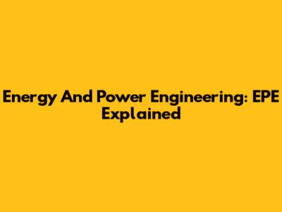 Energy And Power Engineering: EPE Explained