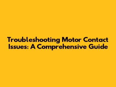 Troubleshooting Motor Contact Issues: A Comprehensive Guide