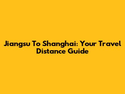 Jiangsu To Shanghai: Your Travel Distance Guide