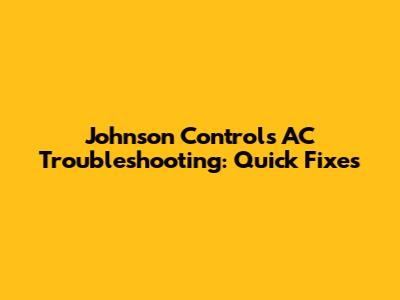 Johnson Controls AC Troubleshooting: Quick Fixes