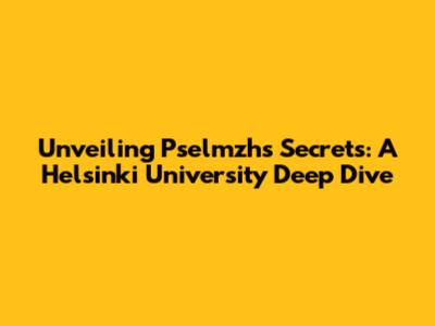 Unveiling Pselmzh's Secrets: A Helsinki University Deep Dive