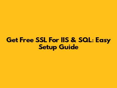 Get Free SSL For IIS & SQL: Easy Setup Guide