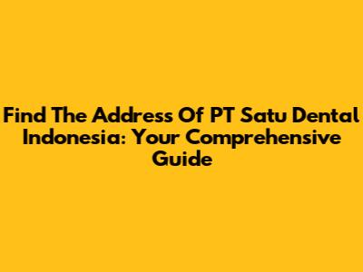 Find The Address Of PT Satu Dental Indonesia: Your Comprehensive Guide