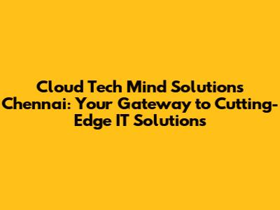 Hey guys! Are you ready to dive into the world of Cloud Tech Mind Solutions Chennai? If you're on the hunt for top-notch IT expertise in Chennai, you've landed in the right spot. We're going to break down what makes Cloud Tech Mind Solutions a key player in the tech scene, focusing on their services, expertise, and how they can supercharge your business.