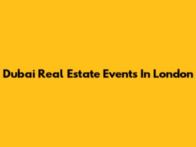 Dubai Real Estate Events In London