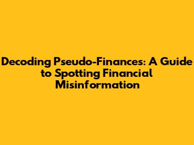 Hey everyone! Ever feel like you're wading through a swamp of jargon when it comes to money? You're definitely not alone. The world of finance can be seriously confusing, and unfortunately, it's also a breeding ground for something we'll call "pseudo-finances." Essentially, this is financial information that sounds legit but is either misleading, incomplete, or outright wrong. This article is your guide to navigating this tricky landscape, helping you spot the red flags and make smarter financial choices. We'll break down what pseudo-finances are, why they're so dangerous, and how you can protect yourself. So, grab your coffee, and let's dive in! This is going to be super helpful, guys, so pay attention!