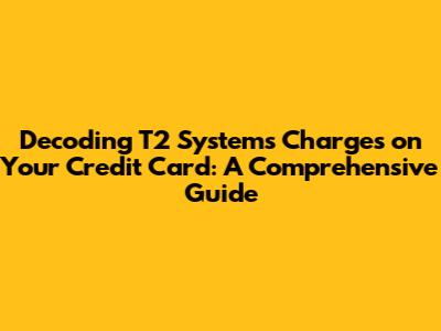 Hey guys! Ever seen a charge from "T2 Systems" on your credit card and been totally puzzled? You're definitely not alone. It's super common to be caught off guard by these transactions. The good news is, understanding these charges is totally doable. This article breaks down everything you need to know about T2 Systems charges, helping you figure out what they are, why they're there, and what to do if you have questions or concerns. So, let’s dive in and demystify those T2 Systems charges once and for all!