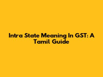 Intra State Meaning In GST: A Tamil Guide