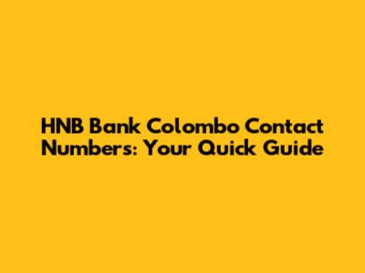 HNB Bank Colombo Contact Numbers: Your Quick Guide