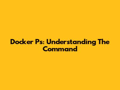 Docker Ps: Understanding The Command