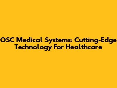 OSC Medical Systems: Cutting-Edge Technology For Healthcare