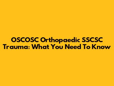 OSCOSC Orthopaedic SSCSC Trauma: What You Need To Know