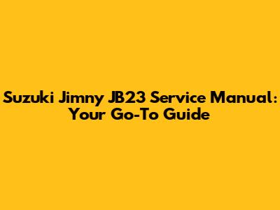 Suzuki Jimny JB23 Service Manual: Your Go-To Guide