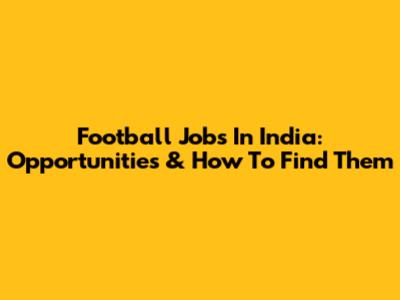 Football Jobs In India: Opportunities & How To Find Them