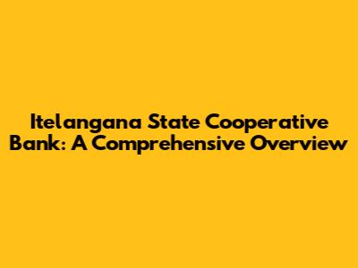 Itelangana State Cooperative Bank: A Comprehensive Overview