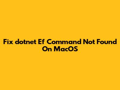 Fix 'dotnet Ef Command Not Found' On MacOS