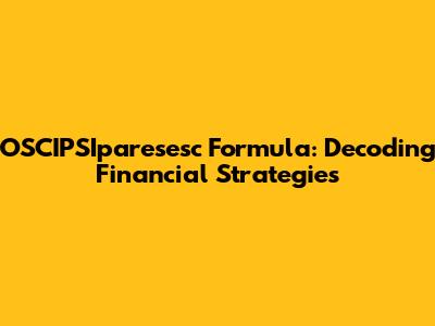 OSCIPSIparesesc Formula: Decoding Financial Strategies