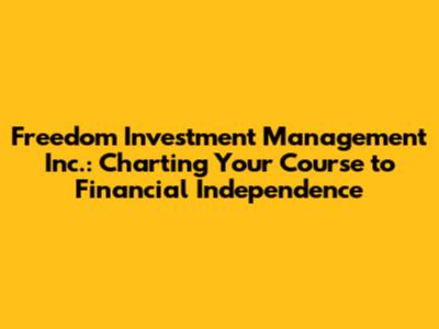 Freedom Investment Management Inc. is a financial advisory firm dedicated to helping individuals and families achieve their financial aspirations. Think of them as your personal financial GPS, helping you chart a course toward your desired destination. They offer a range of services, from investment management to retirement planning, all tailored to your unique needs and circumstances. What truly sets them apart is their commitment to building long-term relationships with their clients, acting as trusted advisors every step of the way.