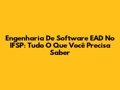 Engenharia De Software EAD No IFSP: Tudo O Que Você Precisa Saber