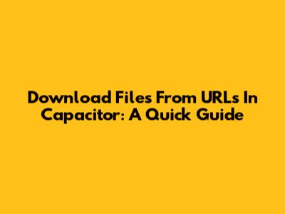 Download Files From URLs In Capacitor: A Quick Guide