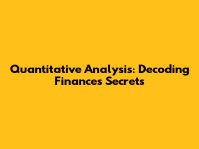 Quantitative Analysis: Decoding Finance's Secrets