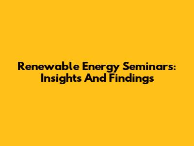Renewable Energy Seminars: Insights And Findings