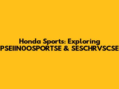 Honda Sports: Exploring PSEIIN0OSPORTSE & SESCHRVSCSE