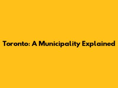 Toronto: A Municipality Explained