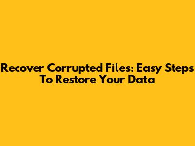 Recover Corrupted Files: Easy Steps To Restore Your Data