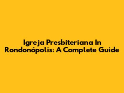 Igreja Presbiteriana In Rondonópolis: A Complete Guide