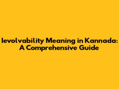 Hey guys! Ever stumbled upon the word "ievolvability" and scratched your head, especially when trying to understand what it means in Kannada? Well, you're not alone! This article is here to break down everything you need to know about ievolvability and how it translates and applies in the Kannada language and context. So, let's dive in and make sense of this term together!