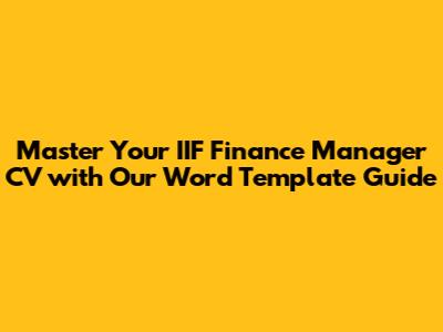 Hey guys! So, you're aiming to land that sweet gig as an IIF Finance Manager and need a killer CV to make it happen? You've come to the right place! Crafting a standout CV is absolutely crucial in today's competitive job market, especially when you're targeting a specific role like an IIF Finance Manager. We're talking about a role that demands a sharp financial mind, impeccable organizational skills, and a deep understanding of investment funds. This isn't just about listing your past jobs; it's about strategically showcasing your experience, skills, and achievements in a way that screams, "I'm the perfect candidate for this job!" We'll dive deep into what makes an IIF Finance Manager CV shine, focusing on how to structure it, what essential information to include, and most importantly, how to present it in a professional and compelling format using a Word template. Get ready to transform your resume from a simple document into your personal marketing powerhouse. We’ll cover everything from the foundational elements like contact information and a strong summary statement to the nitty-gritty of detailing your financial acumen, compliance knowledge, and leadership capabilities. Think of this guide as your secret weapon to impressing recruiters and hiring managers right from the get-go. Let's get your career moving in the right direction!