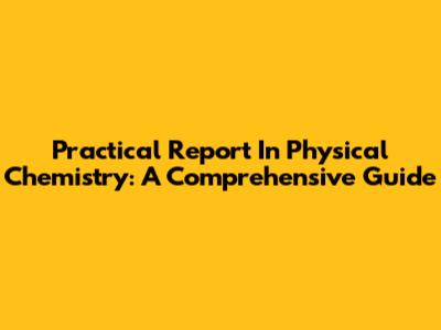 Practical Report In Physical Chemistry: A Comprehensive Guide