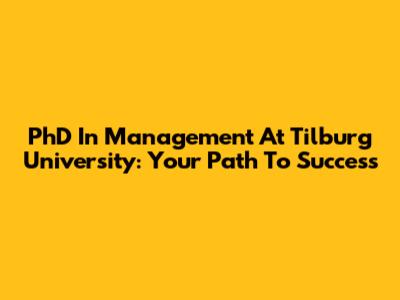 PhD In Management At Tilburg University: Your Path To Success
