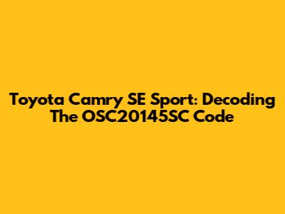 Toyota Camry SE Sport: Decoding The OSC20145SC Code