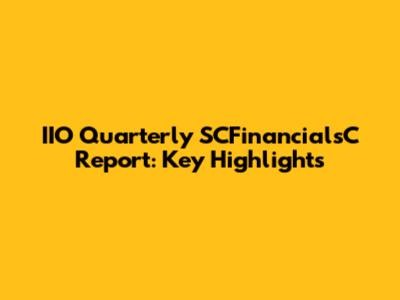 IIO Quarterly SCFinancialsC Report: Key Highlights
