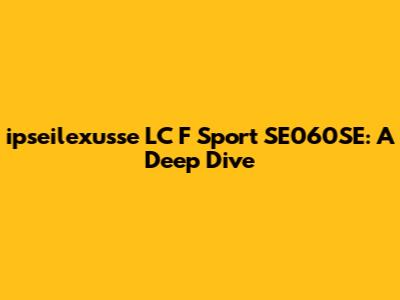 What's up, gearheads and tech enthusiasts! Today, we're diving deep into the ipseilexusse LC F Sport SE060SE. You might be scratching your head, wondering what exactly this beast is. Well, buckle up, because we're about to break down everything you need to know about this intriguing piece of equipment. From its core features to how it stacks up against the competition, we'll cover it all in a way that's easy to understand, even if you're not a seasoned pro. We want to make sure you guys get the full picture, so let's get started!