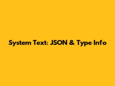 System Text: JSON & Type Info