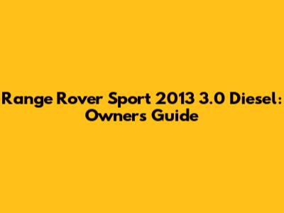Range Rover Sport 2013 3.0 Diesel: Owner's Guide