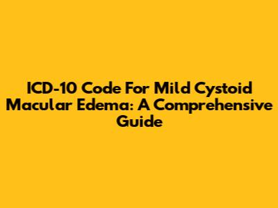 ICD-10 Code For Mild Cystoid Macular Edema: A Comprehensive Guide