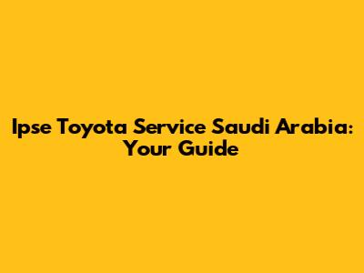 Ipse Toyota Service Saudi Arabia: Your Guide