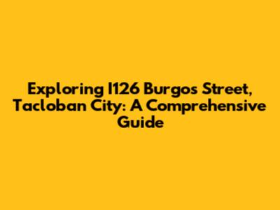 Exploring I126 Burgos Street, Tacloban City: A Comprehensive Guide