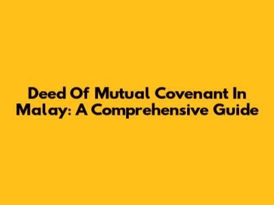 Deed Of Mutual Covenant In Malay: A Comprehensive Guide
