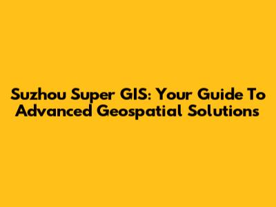 Suzhou Super GIS: Your Guide To Advanced Geospatial Solutions