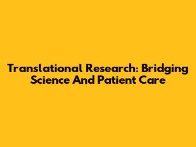 Translational Research: Bridging Science And Patient Care