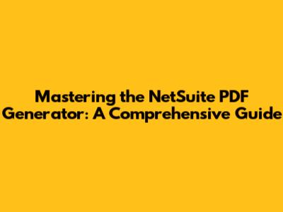 Hey guys! Ever wondered how to make your NetSuite experience even smoother? One of the coolest tools in NetSuite is the PDF generator. It lets you create custom documents for invoices, reports, and a whole bunch of other things. In this guide, we're diving deep into the world of NetSuite PDF generation. We'll cover everything from the basics to some of the more advanced tricks, so you can really level up your NetSuite game. Let's get started, shall we?